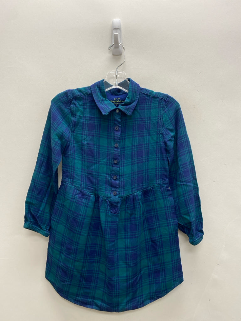 Vineyard Vines SIZE 7 Navy Teal Green Plaid Girl's Dress