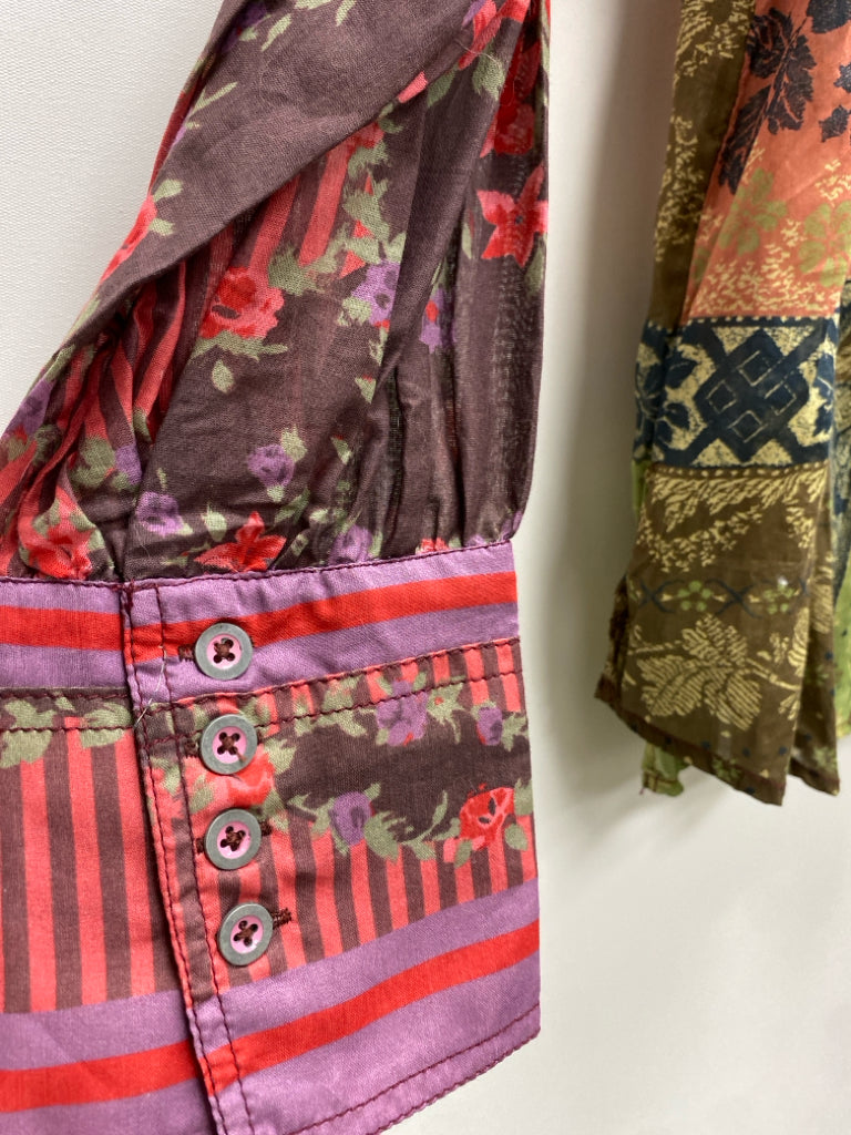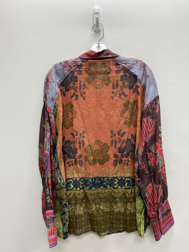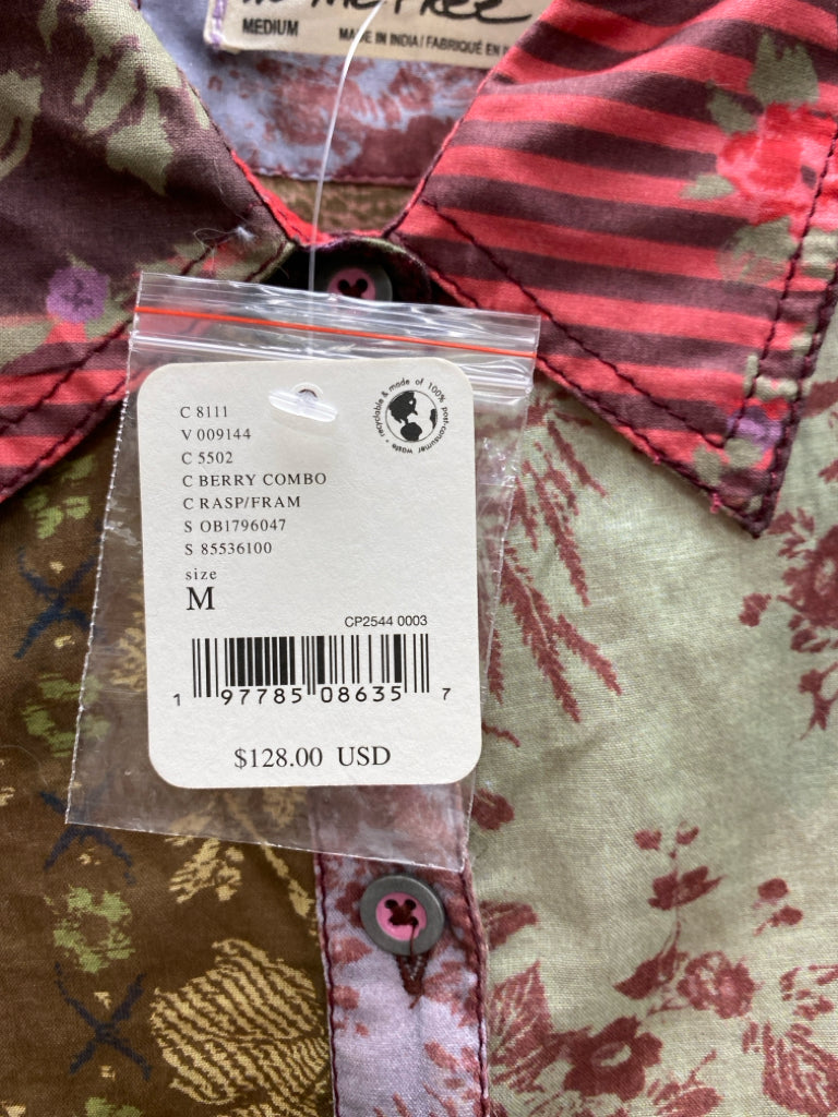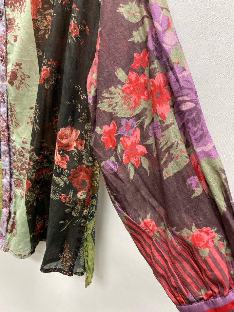 We The Free Size M Red/Blue Green/Multi Flowers Button Up Ladies Top