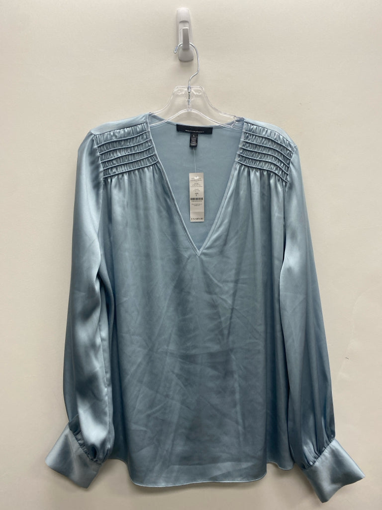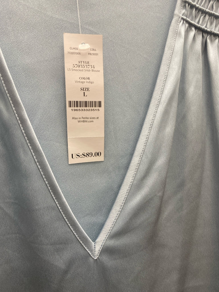Wht House/Blk Mkt Size L Blue Smocking V Neck Ladies Top