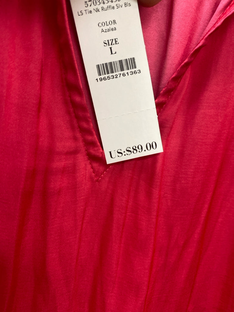Wht House/Blk Mkt Size L Dark Pink Ruffles V Neck Ladies Top