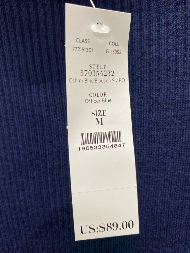 Wht House/Blk Mkt Size M Navy Ribbed Puff Sleeve Ladies Sweater