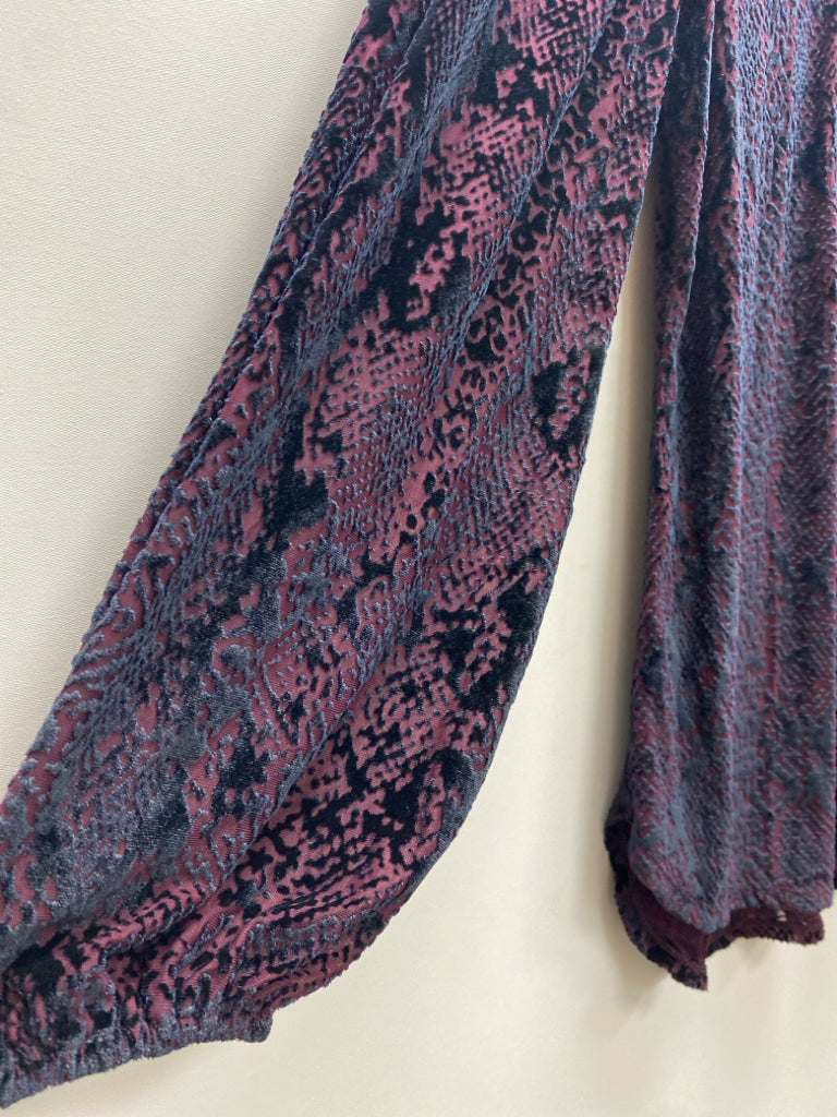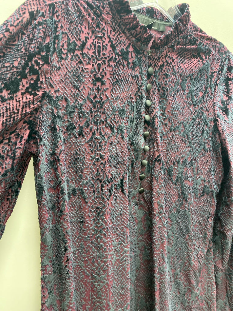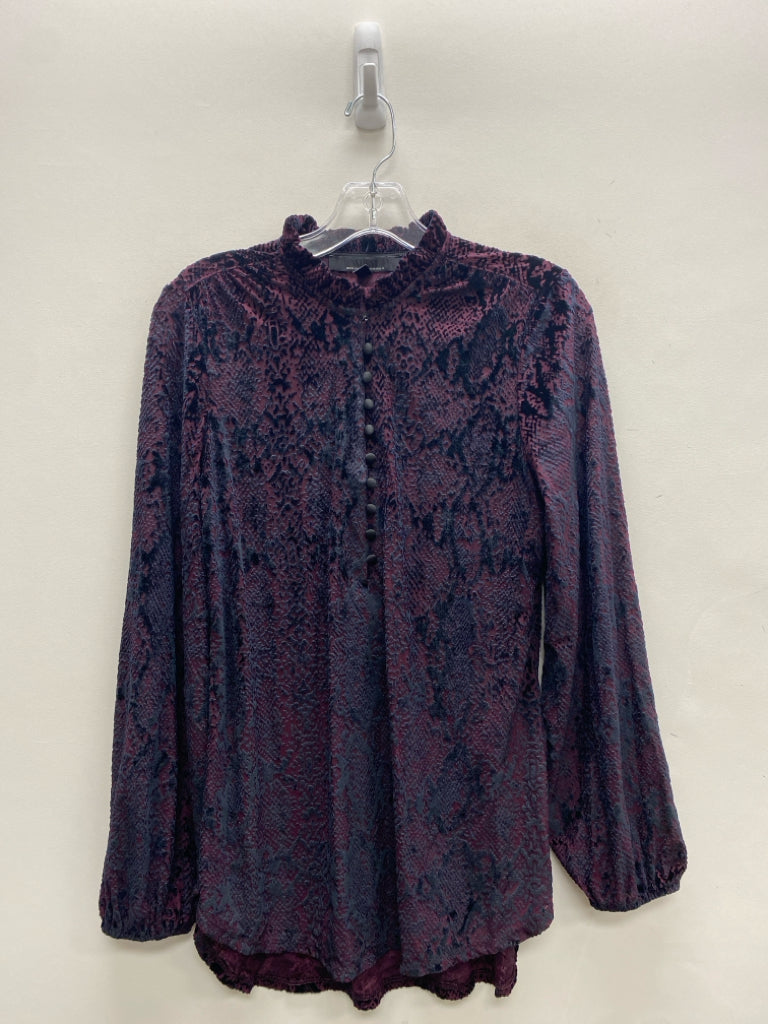 Wht House/Blk Mkt Size S Purple Embossed Quarter Button Velour Ladies Top