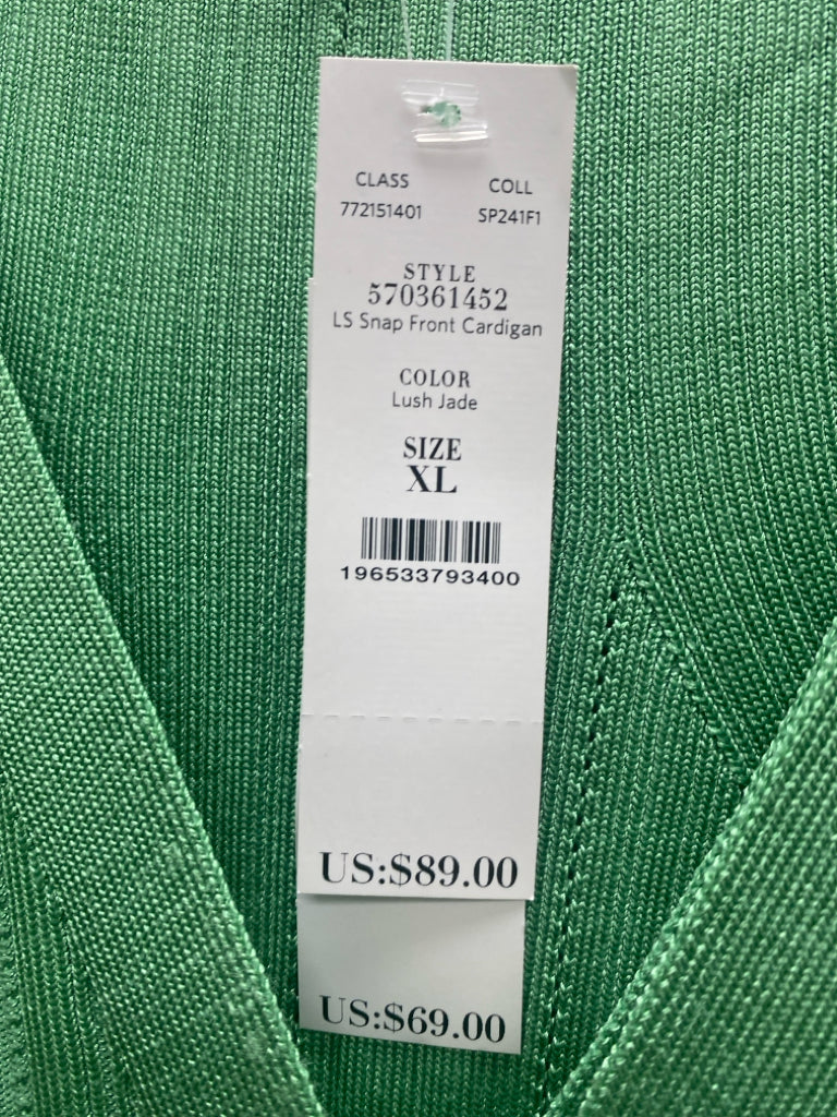 Wht House/Blk Mkt Size XL Green Ribbed Cardigan Ladies Sweater
