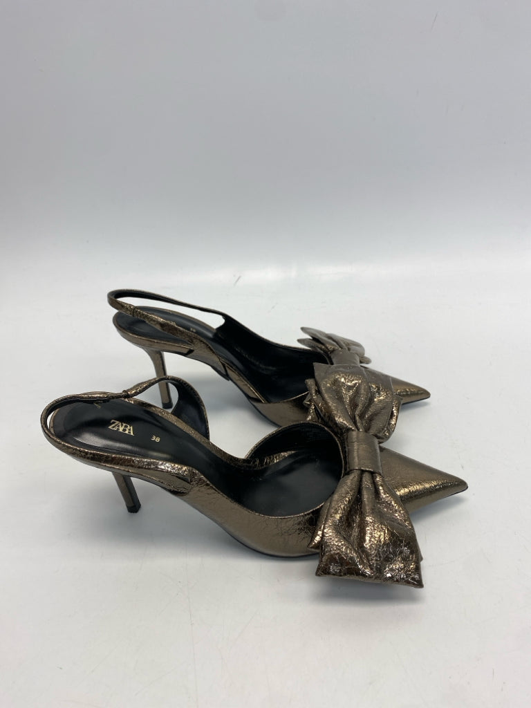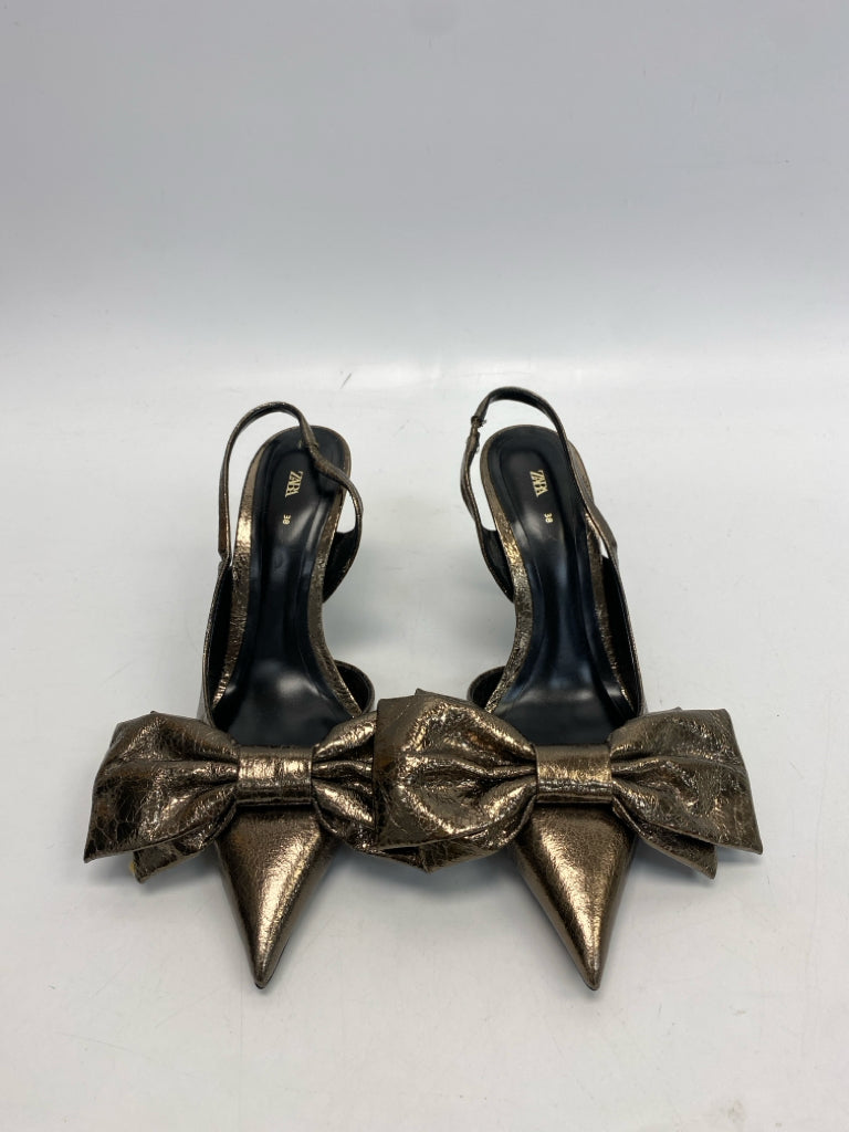 Zara Size 38 Bronze Bow(s) Metallic Heels