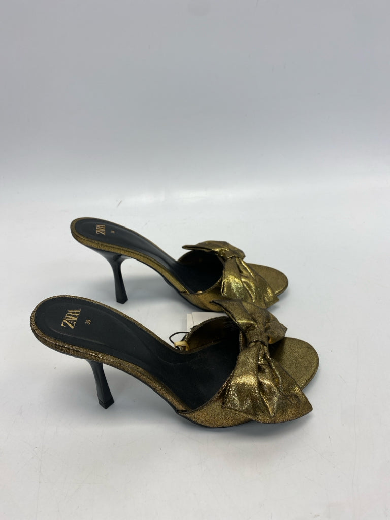 Zara Size 38 Gold Bow(s) Metallic Heels